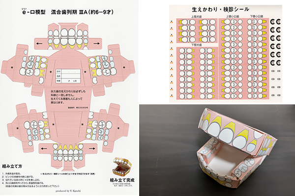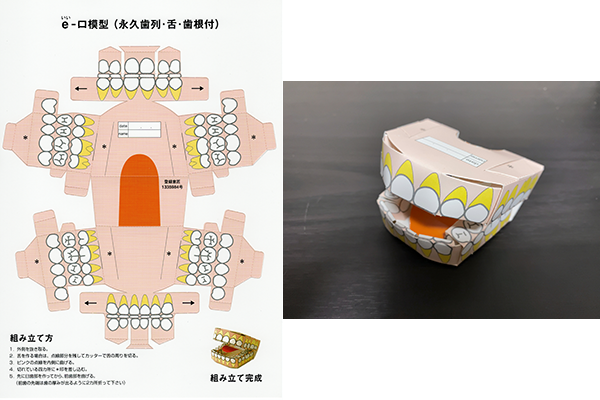 さらに、子供たちの教育のために教育委員会からも、歯科教材となるものを開発してほしいという依頼もあって、子供たち一人々に簡単につくれるペーパークラフトの顎模型を思いつき1年がかりで完成に至りました。